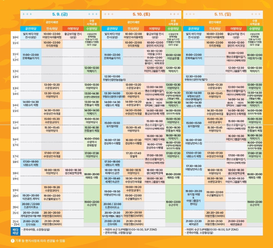 - 운영 장소: 광안리 해수욕장 및 수영사적공원 일대