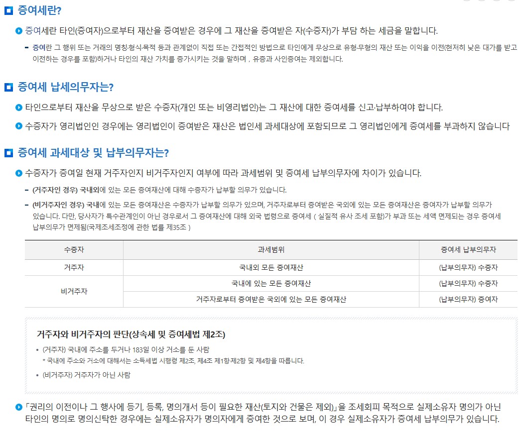 증여세는 살아있는 사람이 무상으로 재산을 이전할 때 부과되는 세금입니다.