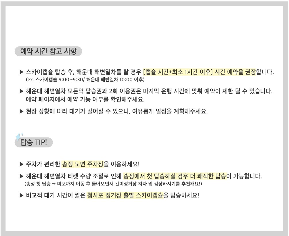- 해변열차와 스카이캡슐 모두 온라인 사전 예매 추천!